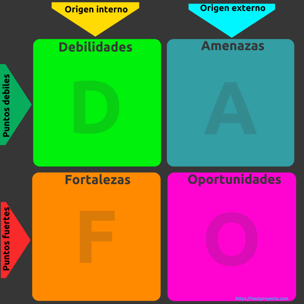 Una herramienta que nos puede ayudar a conocernos mejor es la Matriz DAFO, se trata de una herramienta de análisis de la situación de una empresa, institución, proyecto o persona, analizando sus aspectos internos (Fortalezas y Debilidades) así como externos (Oportunidades y Amenazas).
